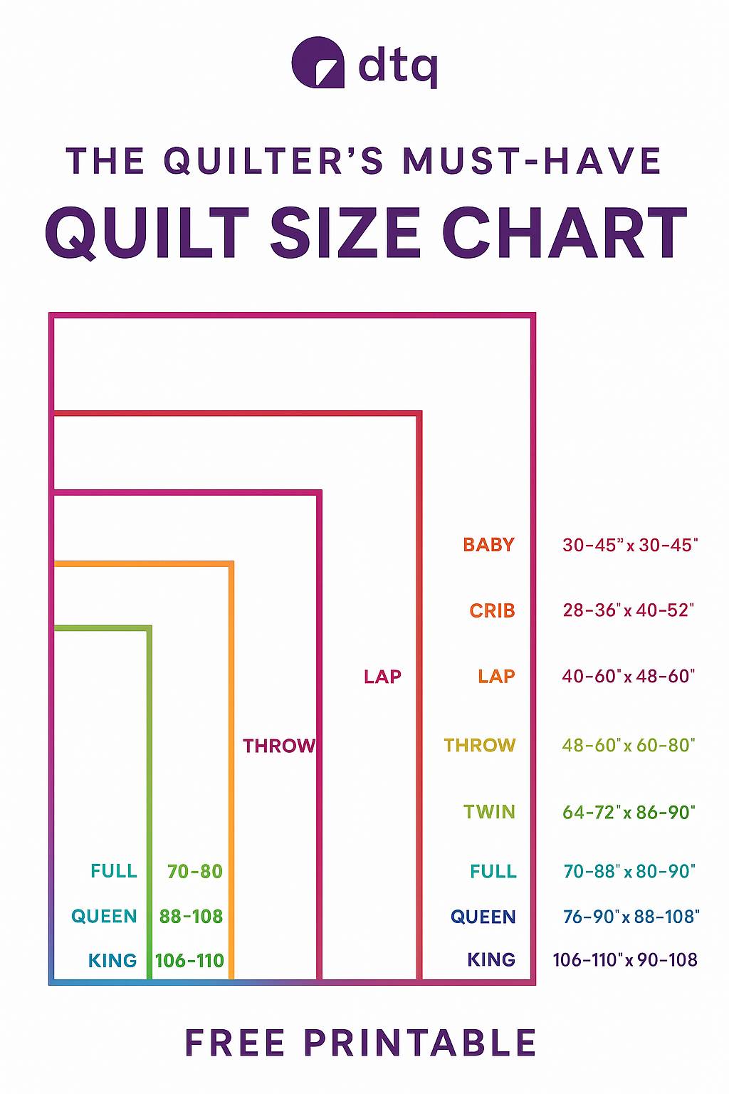 Quilt size chart – click here.